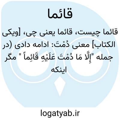 [ویکی الکتاب] معنی دُمْتَ: ادامه دادی (در جمله "إِلَّا مَا دُمْتَ عَلَیْهِ قَائِماً " مگر اینکه بالای سرشان بایستی)