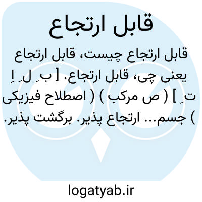 قابل ارتجاع. [ ب ِ ل ِ اِ ت ِ ] ( ص مرکب ) ( اصطلاح فیزیکی ) جسم... ارتجاع پذیر. برگشت پذیر. رجوع به قابلیت ارتجاع شود.