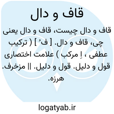 قاف و دال. [ ف ُ ] ( ترکیب عطفی، اِ مرکب ) علامت اختصاری قول و دلیل. قول و دلیل. || مزخرف. هرزه. || هرزه گوئی. || هرزه کاری. || طمطراق. کش و فش. ( برهان ) ( ناظم الاطباء ).