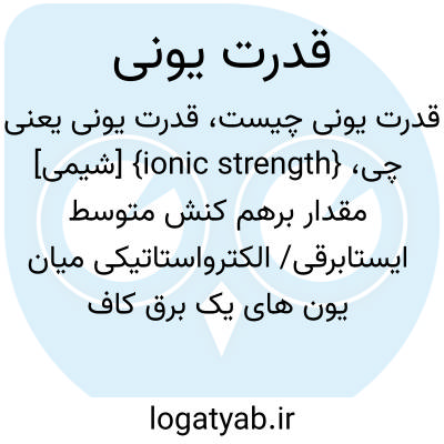 {ionic strength} [شیمی] مقدار برهم کنش متوسط ایستابرقی/ الکترواستاتیکی میان یون های یک برق کاف