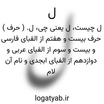 ل. ( حرف ) حرف بیست و هفتم از الفبای فارسی و بیست و سوم از الفبای عربی و دوازدهم از الفبای ابجدی و نام آن لام است و در حساب جُمَّل آن را به سی دارند:
