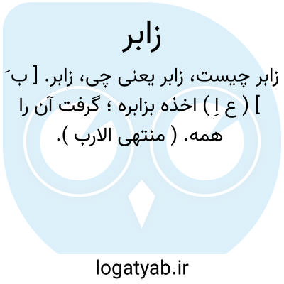 زابر. [ ب َ ] ( ع اِ ) اخذه بزابره؛ گرفت آن را همه. ( منتهی الارب ).