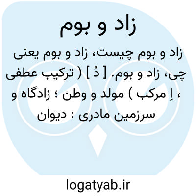 زاد و بوم. [ دُ ] ( ترکیب عطفی، اِ مرکب ) مولد و وطن؛ زادگاه و سرزمین مادری: