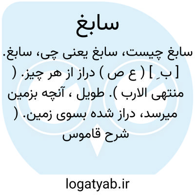 سابغ. [ ب ِ ] ( ع ص ) دراز از هر چیز. ( منتهی الارب ). طویل، آنچه بزمین میرسد، دراز شده بسوی زمین. ( شرح قاموس ). دراز مانند جامه و موی و زره و مانند آن. ( تاج العروس ). ذنب سابغ؛ دم تمام و دراز. ( منتهی الارب ) ( اقرب الموارد ) ( قطر المحیط ) ( ترجمه صحاح ). || تمام از هر چیز. ( منتهی الارب ). کامل و وافی. ( ترجمه صحاح ) ( اقرب الموارد ) ( قطر المحیط ). جامع. شامل. || فراخ.( دهار ). فراخ و تمام شده از نعمت و معاش. ( قطر المحیط ) ( اقرب الموارد ). معاش و نعمت و پول فراوان. ( ترجمه قاموس ) ( تاج العروس ). || رسنده. واصل. سبغ فلان الی بلده؛ مال الیه و وصله فهو سابغ. ( اقرب الموارد ) ( ترجمه قاموس ). و این معنی مجازی است. ( تاج العروس ). || ( اِ ) دامن خود: دنباله ای است بافته متصل به خود که گردن و گوش را بپوشاند و آن را به فارسی زره خود گویند. بیضة لها سابغ؛ خود دامن دار. ( منتهی الارب ). || ( ص ) دارنده ذکر دراز. ( ترجمه صحاح ). فحل سابغ؛ نری است درازذکر و قضیب. ( شرح قاموس ) ( منتهی الارب ). طویل الجردان. ( قطر المحیط ) ( ترجمه قاموس ) ( ترجمه صحاح ) ( تاج العروس ).