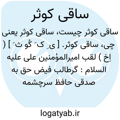ساقی کوثر. [ ی ِ ک َ کُو ث َ ] ( اِخ ) لقب امیرالمؤمنین علی علیه السلام: گرطالب فیض حق به صدقی حافظ سرچشمه آن ز ساقی کوثر پرس.حافظ.|| حضرت رسول.( مجموعه مترادفات ص 124 ): حضرت رسالت پناه ( ص ) و از طرف ایشان حضرت علی ( رض ) ساقی کوثر خواهند شد. ( غیاث اللغات ).