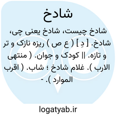 شادخ. [ دِ ] ( ع ص ) ریزه نازک و تر و تازه. || کودک و جوان. ( منتهی الارب ). غلام شادخ؛ شاب. ( اقرب الموارد ).