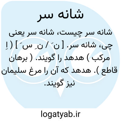 شانه سر. [ ن َ / ن ِ س َ ] ( اِ مرکب ) هدهد را گویند. ( برهان قاطع ). هدهد که آن را مرغ سلیمان نیز گویند. ( بهار عجم ) ( آنندراج ).پوپو. پوپک. شانه بسر. بوبو. بودبود. پوپش. هدهد باشد و آن را پوپوپک و پوپو و پوپه نیز خوانند. ( فرهنگ جهانگیری ). هدهد. ( غیاث اللغات ). آن را شانه سرک و پوپو و پوپوپک نیز گفته اند. ( انجمن آرا ):