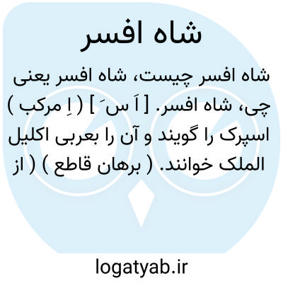 شاه افسر. [ اَ س َ ] ( اِ مرکب ) اسپرک را گویند و آن را بعربی اکلیل الملک خوانند. ( برهان قاطع ) ( از آنندراج ) ( انجمن آرا ). رجوع به شاه بسه و اکلیل الملک شود.