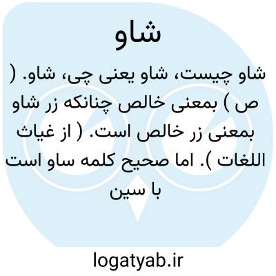شاو. ( ص ) بمعنی خالص چنانکه زر شاو بمعنی زر خالص است. ( از غیاث اللغات ). اما صحیح کلمه ساو است با سین مهمله. ( حاشیه غیاث اللغات چ دبیرسیاقی ). رجوع به ساو شود.