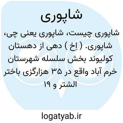 شاپوری. ( اِخ ) دهی از دهستان کولیوند بخش سلسله شهرستان خرم آباد واقع در 35 هزارگزی باختر الشتر و 19 هزارگزی باختر راه شوسه خرم آباد به کرمانشاه. جلگه ای و سردسیرو مالاریاخیز است. جمعیت آن 120نفر مذهب سکنه آن تشیع و زبان آنان لکی و فارسی است. آب آن از رودخانه خیاره، محصول آن غلات و تریاک و شغل اهالی آن زراعت وگله داری است. راه ده مالرو است و ساکنین آن از طایفه کولیوند میباشند. ( فرهنگ جغرافیایی ایران ج 6 ).