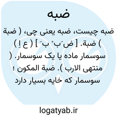 ضبة. [ ض َب ْ ب َ ] ( ع اِ ) سوسمار ماده. ( منتهی الارب ) ( مهذب الاسماء ). || آهن در. حلقه در. بَش. پَش. آهن جامه. آهن که بر در زنند. ج، ضباب. ( مهذب الاسماء ).