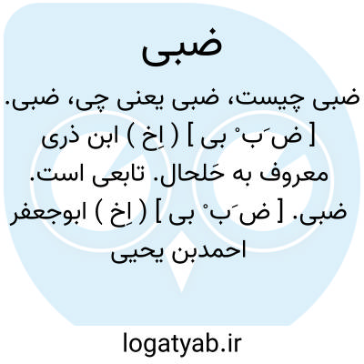 ضبی. [ ض َب ْ بی ی ] ( ع ص ) هذه النسبة الی بنی ضبّة و هم جماعة: ففی مضر ضبةبن ادّبن طابخةبن الیاس بن مضربن نزاربن ربیعةبن معدبن عدنان و فی قریش ضبةبن الحرب بن فهربن مالک و فی هذیل ضبةبن عمروبن الحرث بن تمیم بن سعدبن هذیل و جماعةینسبون الی کل واحد من هولاء... ( سمعانی ورق 360 ).