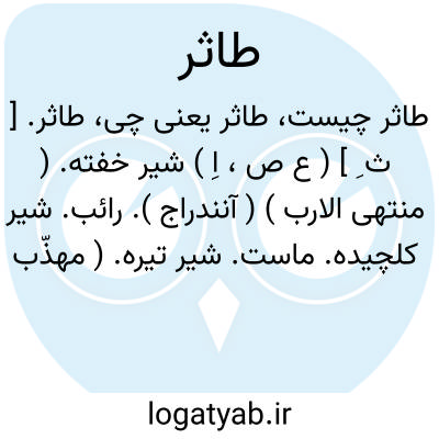 لغت نامه دهخدا طاثر. [ ث ِ ] ( ع ص، اِ ) شیر خفته. ( منتهی الارب ) ( آنندراج ). رائب. شیر کلچیده. ماست. شیر تیره. ( مهذّب الاسماء ).