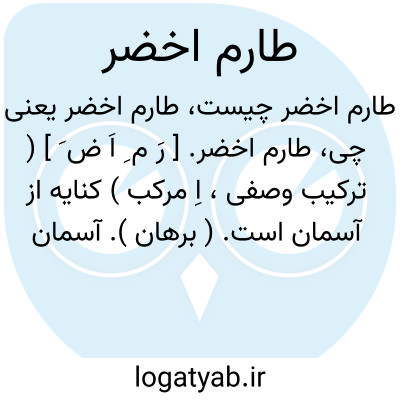 طارم اخضر. [ رَ م ِ اَ ض َ ] ( ترکیب وصفی، اِ مرکب ) کنایه از آسمان است. ( برهان ). آسمان: