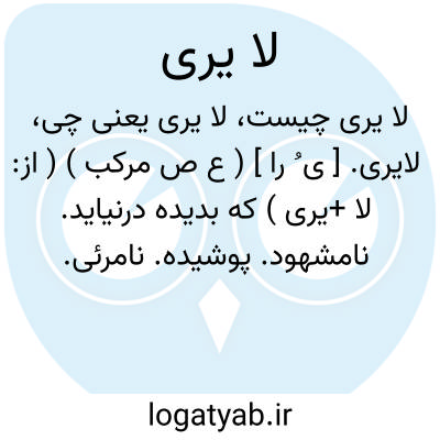 لایری. [ ی ُ را ] ( ع ص مرکب ) ( از: لا +یری ) که بدیده درنیاید. نامشهود. پوشیده. نامرئی.