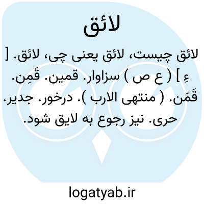 لائق. [ ءِ ] ( ع ص ) سزاوار. قمین. قَمِن. قَمَن. ( منتهی الارب ). درخور. جدیر. حری. نیز رجوع به لایق شود.