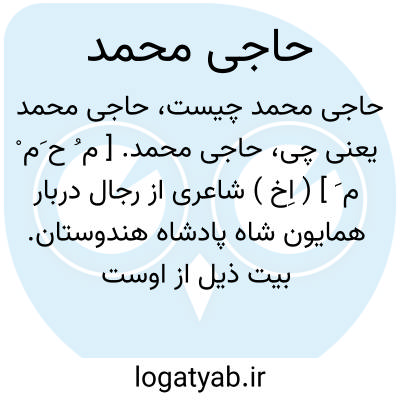 حاجی محمد. [ م ُ ح َم ْ م َ ] ( اِخ ) شاعری از رجال دربار همایون شاه پادشاه هندوستان. بیت ذیل از اوست: