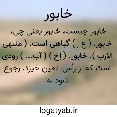 خابور. ( اِخ ) ( آب... ) رودی است که از رأس العین خیزد. رجوع شود به نزهت القلوب چ لیدن ج 3 ص 226 و تاریخ غازانی ص 147 و قاموس کتاب مقدس و حدود العالم ص 91 و رجوع شود به فهرست ایران باستان. نام نهر بزرگی است بین رأس العین و فرات و آب این رود از چشمه های رأس العین فراهم آید و بسیاری از شهرها که این رود از آنجا گذرد بدان نام موسوم شده است. ( از معجم البلدان ج 3 ص 383 ).