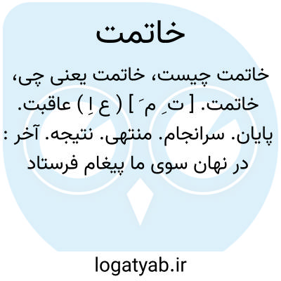 خاتمة. [ ت ِ م َ ] ( ع اِ ) خاتمه. آخر هر چیزی و پایان آن. نتیجه. سرانجام. پایان. ج، خواتم، خواتیم. ( منتهی الارب ) ( مهذب الاسماء ).