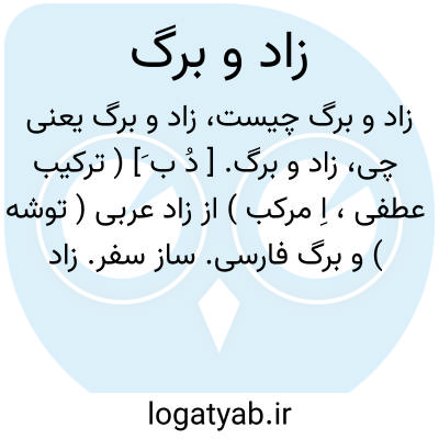 زاد و برگ. [ دُ ب َ] ( ترکیب عطفی، اِ مرکب ) از زاد عربی ( توشه ) و برگ فارسی. ساز سفر. زاد راه. ساز و برگ. توشه زندگی.