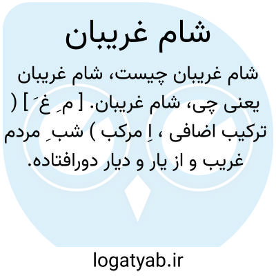 شام غریبان. [ م ِ غ َ ] ( ترکیب اضافی، اِ مرکب ) شب ِ مردم غریب و از یار و دیار دورافتاده. شام مسافران که وحشتناک می باشدبخصوص در مفلسی. ( بهار عجم ) ( آنندراج ):