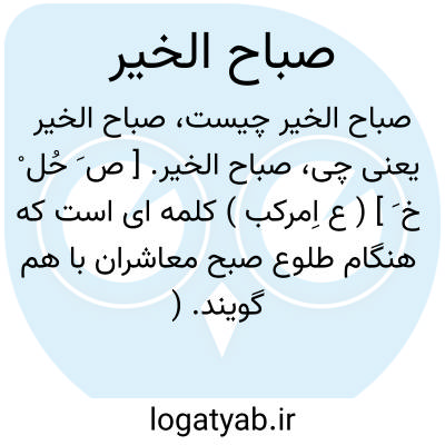 صباح الخیر. [ ص َ حُل ْ خ َ ] ( ع اِمرکب ) کلمه ای است که هنگام طلوع صبح معاشران با هم گویند. ( غیاث اللغات ). صبح به خیر گفتن، مقابل شب به خیر: