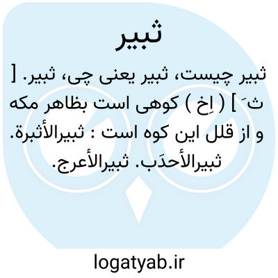 ثبیر. [ ث َ ] ( اِخ ) کوهی است بظاهر مکه و از قلل این کوه است: ثبیرالأثبرة. ثبیرالأحدَب. ثبیرالأعرج. ثبیرالخضراء. ثبیرالزنج. ثبیر غینی. ثبیرالنّضع: