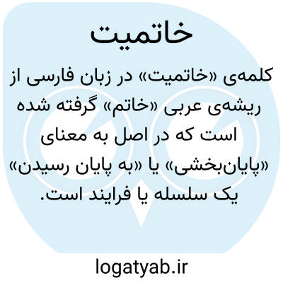 کلمه‌ی «خاتمیت» در زبان فارسی از ریشه‌ی عربی «خاتم» گرفته شده است که در اصل به معنای «پایان‌بخشی» یا «به پایان رسیدن» یک سلسله یا فرایند است. این واژه بیشتر در متون دینی و فلسفی به کار می‌رود و معمولاً به مفهوم «خاتمیت پیامبران» اشاره دارد؛ یعنی اعتقاد به اینکه پیامبر اسلام، حضرت محمد (ص)، آخرین پیامبر الهی است و پس از او پیامبری نخواهد آمد. از نظر ساختار، این واژه از اسم «خاتم» با افزودن پسوند «ـیت» ساخته شده است که در عربی و فارسی برای ساختن مصدر معنوی یا حالت مفهومی به کار می‌رود، مثل عدالت، انسانیت، شجاعت. بنابراین، خاتمیت به معنای «حالت خاتم بودن» است. در فلسفه و کلام اسلامی، خاتمیت نه‌تنها پایان نبوت، بلکه کمال آن نیز تلقی می‌شود، یعنی دین اسلام به عنوان دین کامل و نهایی معرفی شده است. در گفت‌وگوهای دینی و فرهنگی، این واژه نماد تمامیت، کمال و بسته شدن یک دوره از هدایت الهی است.