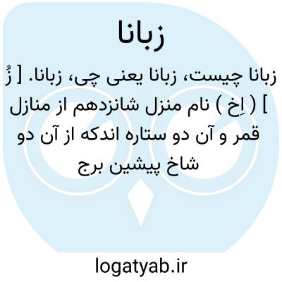 زبانا. [ زُ ] ( اِخ ) نام منزل شانزدهم از منازل قمر و آن دو ستاره اندکه از آن دو شاخ پیشین برج عقرب است. ( غیاث اللغات ). زبانا منزلی از منازل قمر که بیست و هشت منزل دارد. ( کشف اللغات ). منزل شانزدهم بود از منازل بیست و هشت قمر و علامت او دو ستاره است بر دو کفه میزان هر دو از اکبر قدر ثالث، یکی را که بر طرف جنوب است کفةالجوبیة... و عرب گویند که این دو کوکب بر زبانای عقرب واقعند یعنی بر دو قرن او. ( فرهنگ نظام بنقل از شرح بیست باب ملامظفر ). عرب اول و سوم را که بر دو کفه اند و روشن ترند دو زباناء عقرب خوانند یعنی دو سر او و آن منزل شانزدهم قمر است و بعضی گفته اند ایشان را زبانا از آن خوانده اند که از یکدیگر مندفعاند یعنی دور وزبن دفع بود. ( ترجمه صور الکواکب ). چون قمردر نهایت عرض شمالی بود بمیان هر دو زبانا بگذرد. ( ترجمه صور الکواکب ). پس در وسط دو زبانا تا او یازده درجه و پنج دقیقه باشد. ( ترجمه صور الکواکب ). پس از میان زبانا تا وسط کواکب جبهه پانزده درجه و سی وپنج دقیقه باشد. ( ترجمه صور الکواکب ):