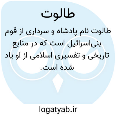 [ویکی الکتاب] معنی طَالُوتُ: پادشاه و فرمانده ای در بنی اسرائیل که به فرمان الهی که توسط پیامبر زمانش ابلاغ شد منصوب گردید