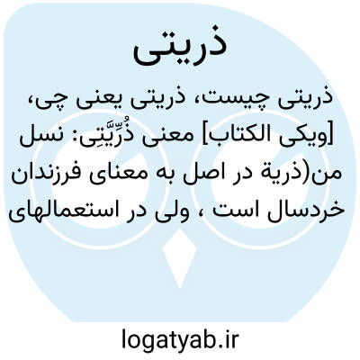 [ویکی الکتاب] معنی ذُرِّیَّتِی: نسل من(ذریة در اصل به معنای فرزندان خردسال است، ولی در استعمالهای متعارف در خردسالان و بزرگسالان هر دو استعمال میشود، هم در یک نفر به کار میرود، و هم در چند نفر، ولی اصلش به معنای چند نفر است )