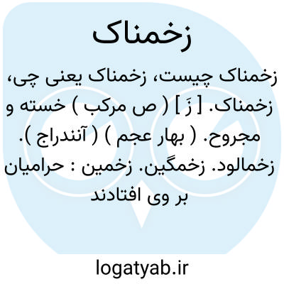 زخمناک. [ زَ ] ( ص مرکب ) خسته و مجروح. ( بهار عجم ) ( آنندراج ). زخمالود. زخمگین. زخمین: حرامیان بر وی افتادند و او را برهنه کردند و زخمناک و افتاده رها کردند. ( ترجمه کهن انجیل ص 224 ).