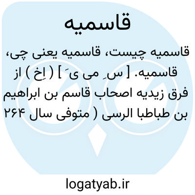 قاسمیه. [ س ِ می ی َ ] ( اِخ ) از فرق زیدیه اصحاب قاسم بن ابراهیم بن طباطبا الرسی ( متوفی سال 264 هَ. ق. ) از ائمه زیدیه یمن صاحب کتبی بر رد رافضه و رد کتابی منسوب به ابن المقفع. ( خاندان نوبختی ص 261 به نقل از الفهرست ص 193و شرح حال ابن مقفع تألیف عباس اقبال ص 62 و 64 ).