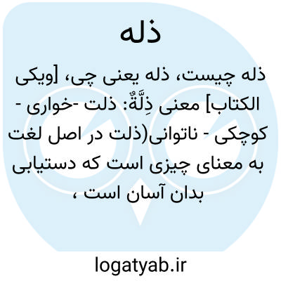 [ویکی الکتاب] معنی ذِلَّةٌ: ذلت -خواری - کوچکی - ناتوانی(ذلت در اصل لغت به معنای چیزی است که دستیابی بدان آسان است، حال چه دستیابی محقق و چه فرضی)