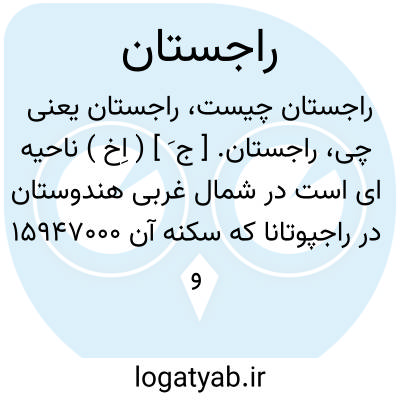 راجستان. [ ج َ ] ( اِخ ) ناحیه ای است در شمال غربی هندوستان در راجپوتانا که سکنه آن 15947000 و پایتخت آن جی پور است.