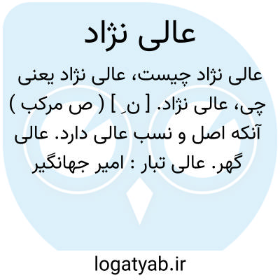 آن که دارای اصل و نسبی عالی است عالی گوهر عالی نسب ٠