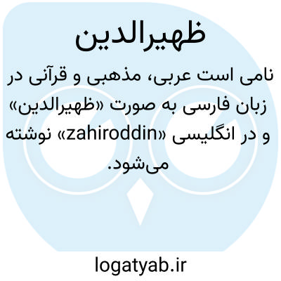 معنی: یار و یاور دین، پشتیبان دین، پشتیبانِ کیش و آئین، ( اَعلام ) ) ظهیرالدین سمرقندی: [حدود هجری] شاعر و نویسنده ی ایرانی، مؤلف اغراض السیاسه، در آیین کشورداری به فارسی و تحریری از سندبادنامه، ) ظهیرالدین کرابی: امیر [، قمری] سلسله ی سربداران، که پهلوان حیدر او را برکنار کرد، ) ظهیرالدین مرعشی: [زنده در سال هجری] مورخ گیلانی، مؤلف تاریخ تبرستان، رویان و مازندران [حدود هجری]، ( در اعلام ) نام چند تن از مشاهیر از جمله ظهیرالدین فاریابی [ظهیر فاریابی] شاعر معروفِ ایرانی قرنِ ششم ( هـق )، نام شاعر نامدار ایرانی قرن ششم، ظهیرالدین فاریابی