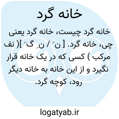خانه گرد. [ ن َ / ن ِ گ َ ]( نف مرکب ) کسی که در یک خانه قرار نگیرد و از این خانه به خانه دیگر رود، کوچه گرد. متحرک: