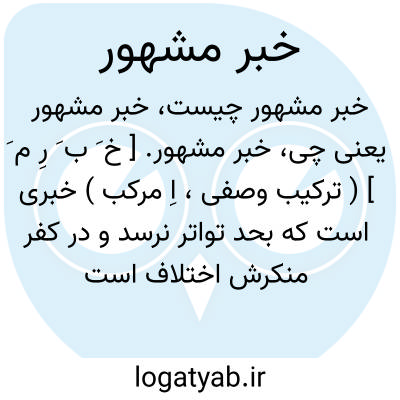 خبر مشهور. [ خ َ ب َ رِ م َ ] ( ترکیب وصفی، اِ مرکب ) خبری است که بحد تواتر نرسد و در کفر منکرش اختلاف است و اصح کفر او است.