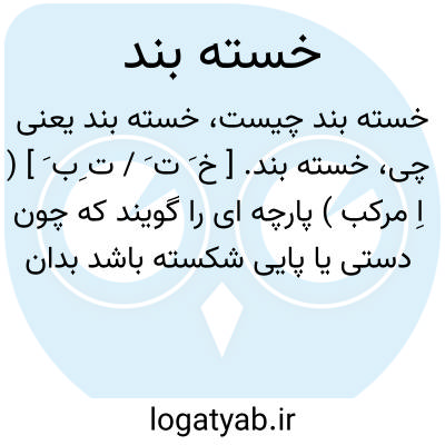 خسته بند. [ خ َ ت َ / ت ِب َ ] ( اِ مرکب ) پارچه ای را گویند که چون دستی یا پایی شکسته باشد بدان بندند. ( از برهان قاطع ). نوار مانندی که دست و پای شکسته و دیگر زخمها را بندند. ( ناظم الاطباء ). مرمشم، مَریشم، تربند، رَفادَه. ( یادداشت بخط مؤلف ). || هر چیز که آن را بر زخم بندند خواه پارچه باشد خواه مرهم. ( برهان قاطع ) ( ناظم الاطباء ). || ( نف مرکب ) کسی را گویند که زخم را و دست و پای شکسته را می بندد. ( برهان قاطع ) ( از ناظم الاطباء ). جراح.