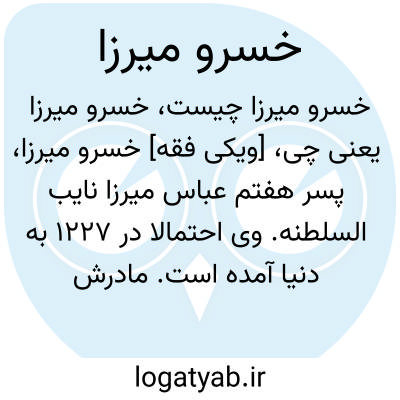 [ویکی فقه] خسرو میرزا، پسر هفتم عباس میرزا نایب السلطنه. وی احتمالا در ۱۲۲۷ به دنیا آمده است. مادرش بانو دُرّه، دختر امیرگونه خانِ کُرد زعفرانلو (ایلخان خراسان) و از طایفه تراکمه جهانشاهی بود.