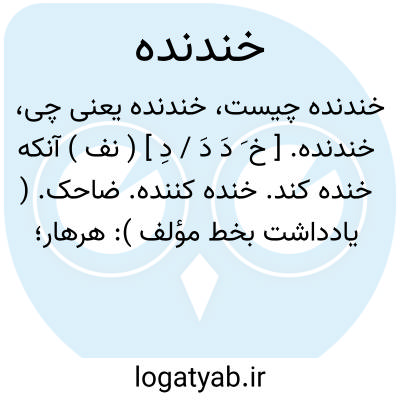 خندنده. [ خ َ دَ دَ / دِ ] ( نف ) آنکه خنده کند. خنده کننده. ضاحک. ( یادداشت بخط مؤلف ): هرهار؛ بیهوده خندنده. هأهاء؛ مرد نیک خندنده. ( منتهی الارب ).