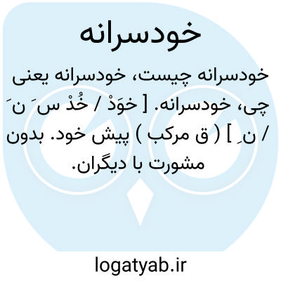 خودسرانه. [ خوَدْ / خُدْ س َ ن َ / ن ِ ] ( ق مرکب ) پیش خود. بدون مشورت با دیگران.