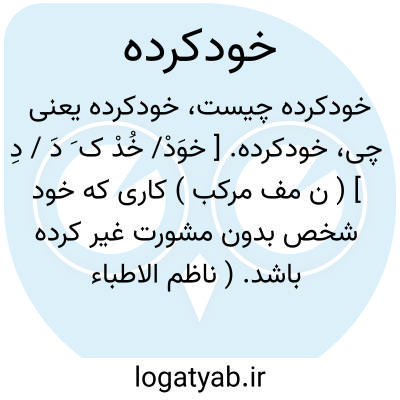 خودکرده. [ خوَدْ/ خُدْ ک َ دَ / دِ ] ( ن مف مرکب ) کاری که خود شخص بدون مشورت غیر کرده باشد. ( ناظم الاطباء ):