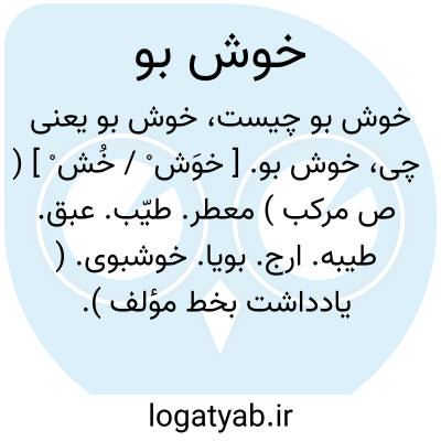 خوش بو. [ خوَش ْ / خُش ْ ] ( ص مرکب ) معطر. طیّب. عبق. طیبه. ارج. بویا. خوشبوی. ( یادداشت بخط مؤلف ). چیزی که دارای بوی نیک و معطر باشد. ( ناظم الاطباء ):