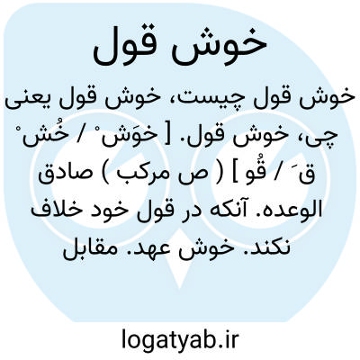 خوش قول. [ خوَش ْ / خُش ْ ق َ / قُو ] ( ص مرکب ) صادق الوعده. آنکه در قول خود خلاف نکند. خوش عهد. مقابل بدقول.