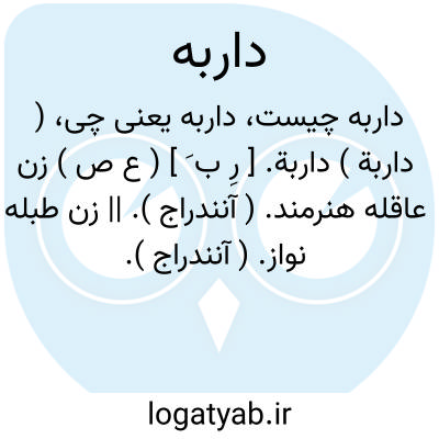 لغت نامه دهخدا ( داربة ) داربة. [ رِ ب َ ] ( ع ص ) زن عاقله هنرمند. ( آنندراج ). || زن طبله نواز. ( آنندراج ).