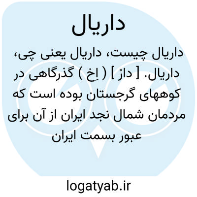 داریال. [ دارْ ] ( اِخ ) گذرگاهی در کوههای گرجستان بوده است که مردمان شمال نجد ایران از آن برای عبور بسمت ایران مرکزی استفاده میکرده اند. رجوع به ایران باستان ج 1 ص 284 شود.