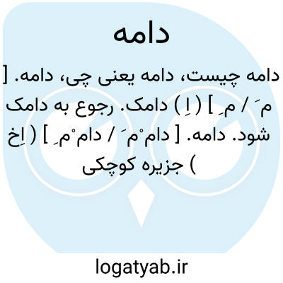 دامه. [ م َ / م ِ ] ( اِ ) دامک. رجوع به دامک شود. دامه. [ دام ْم َ / دام ْم ِ ] ( اِخ ) جزیره کوچکی در اقیانوس هند واقع در 204هزارگزی شمال شرقی جزیره تیمور و در 7 درجه عرض جنوبی. ( قاموس الاعلام ترکی ).