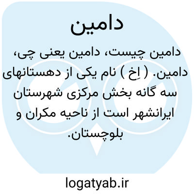 دامین. ( اِخ ) نام یکی از دهستانهای سه گانه بخش مرکزی شهرستان ایرانشهر است از ناحیه مکران و بلوچستان. این دهستان در شمال ایرانشهر واقع و جاده شوسه ایرانشهر به خاش از مرکز آن میگذرد و حدود آن بشرح زیرست: از طرف شمال به بخش خاش. از طرف خاور بدهستان ابتر. از طرف جنوب بدهستان مرکزی ایرانشهر از طرف باختر به بخش بزمان. منطقه ای جلگه و قسمت علیای ( شمال ) آن کوهستانیست. ارتفاعات این دهستان عموماً خاکی و هوای آن گرمسیر و مالاریائی است. رودخانه بمپورکه شرح آن در جای خود داده شده است از این ارتفاعات سرچشمه میگیرد توضیح اینکه این رودخانه در مسیر خودزه پیدا میکند و بهر آبادی که میرسد مردم آن آبادی جلوی این رودخانه را بکلی میگیرند و بعد از بندی که آبادی اول بر آن آب بست بلافاصله کف رودخانه شروع به زه دادن میکند و تا آبادی دیگر میرسد آب بقدر کافی جمع میشود. آب آشامیدنی دهستان از قنات و رودخانه است محصول عمده دهستان غلات و خرما و لبنیات و ذرت است و شغل اهالی آن زراعت و گله داری است و آن از هشت آبادی بزرگ و کوچک تشکیل شده و جمعیت آن در حدود 3000 تن است. گویش مادری مردم دهستان بلوچی و راههای دهستان مالرو است و جاده شوسه ایرانشهر به خاش از وسط ازآن عبور مینماید. ( از فرهنگ جغرافیایی ایران ج 8 ).